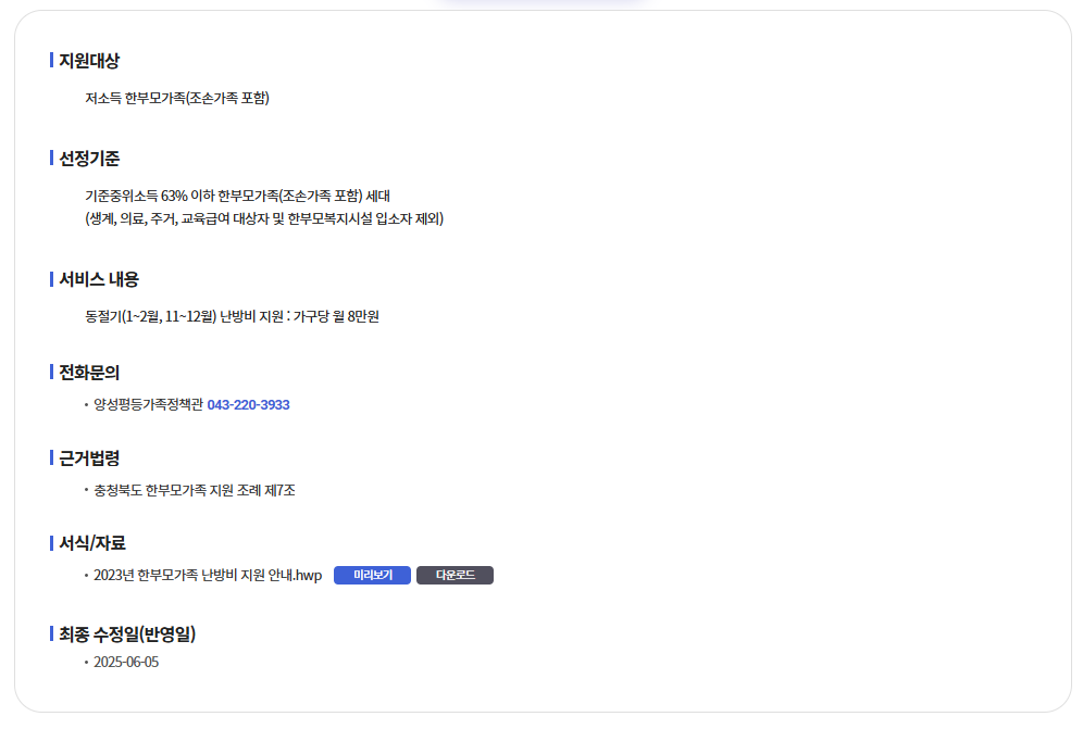즉, 한부모가족이라는 이유만으로 자동으로 난방비가 지급되는 구조는 아니며,