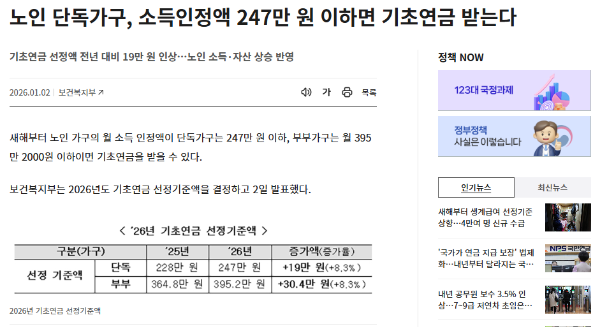 2026년 새해가 되면서 부모님 댁 보일러는 못 놔드려도, 매달 통장에 꽂히는 '기초연금'은 꼭 챙겨드려야 할 시기가 왔습니다.